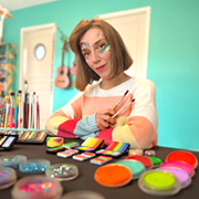 Maquillage professionnel hypoallergénique à base d'eau, et paillettes biodégradables. Marques Diamond FX et Fusion.